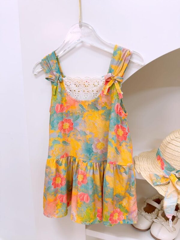 y1358 – Colorful Flower Lace Dress With Hat